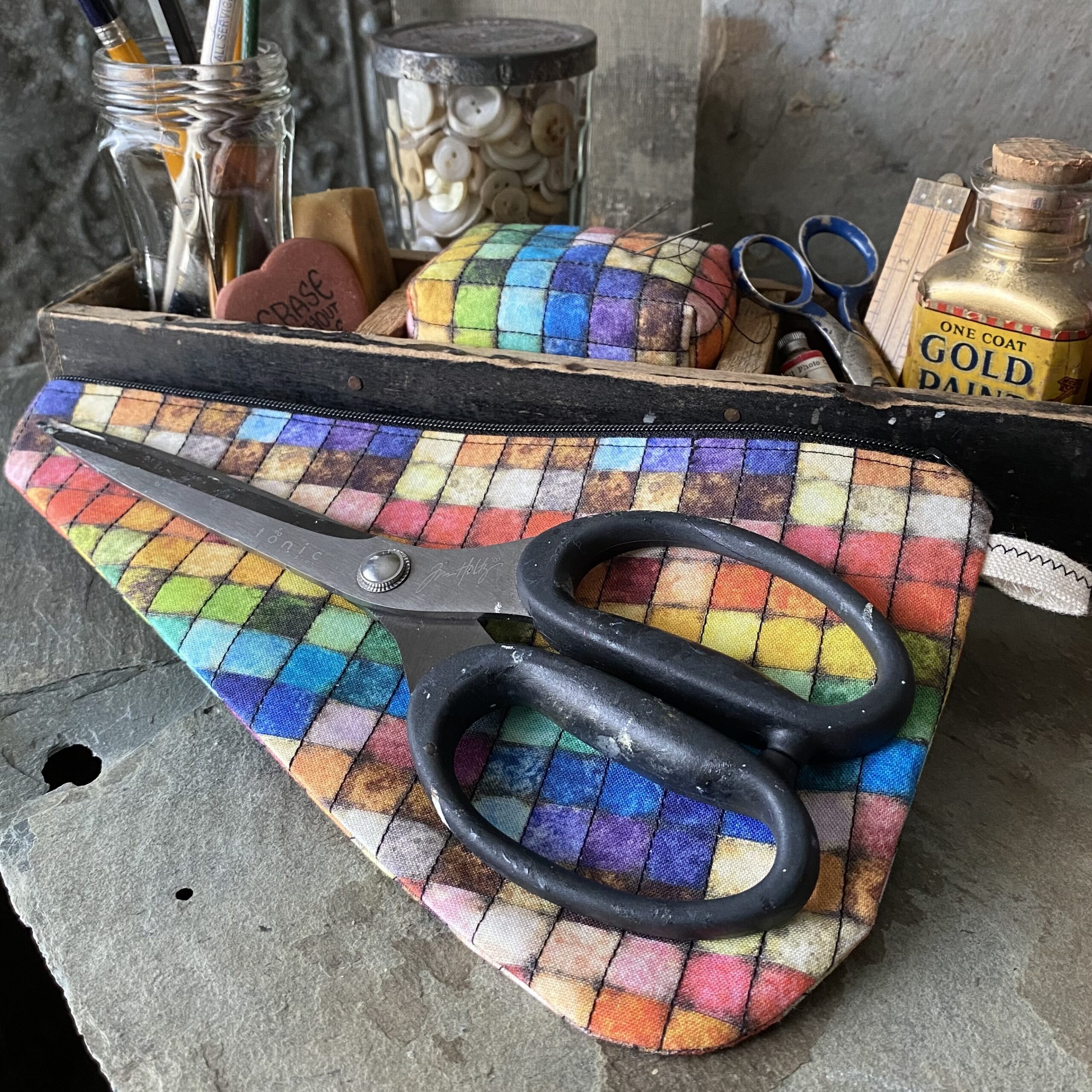 10. Scissor Zipper Pouch- A Colorblock zipper pouch made for storage of your Tim Holtz Titanium 9.5″ Sheers or other Large Multi Purpose Scissors. – $30 (scissors not included)