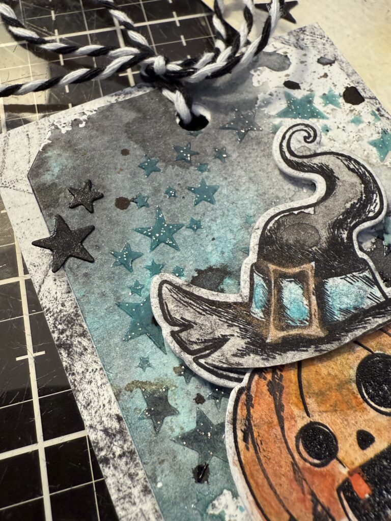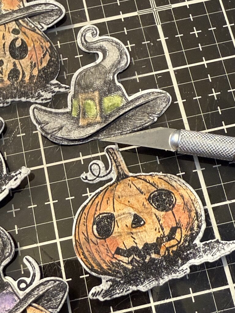 I used a small tag die to cut out tags for each of the pumpkin witches.
